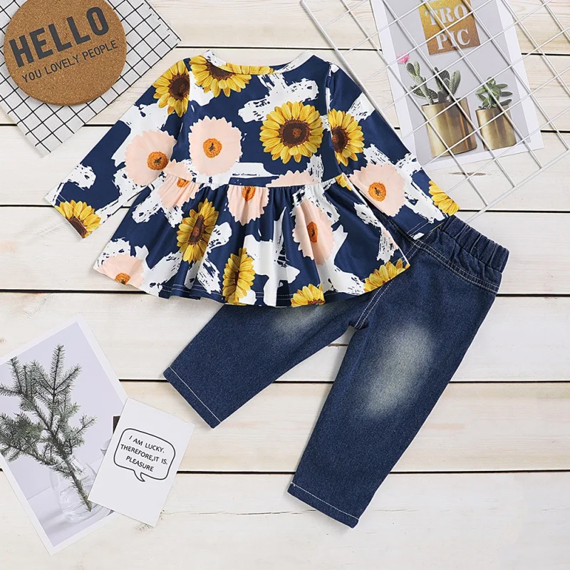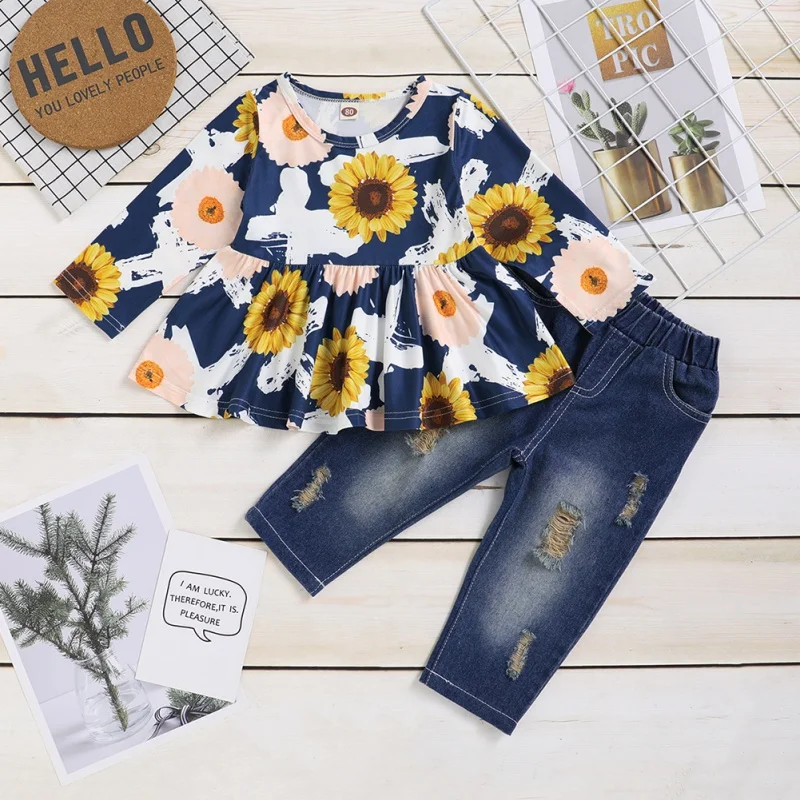 Buy 2020 Kids Girl Set Spring Autumn Long Sleeve Sunflower Print Tops+Fashon Ripped Jeans Two-piece Sui Right Here and Right Now Just for USD US $8.84, Price will be rise up at any time without notification and I cant guaranted that the stock is still available tommorow or next hour. So Please Save It Now!