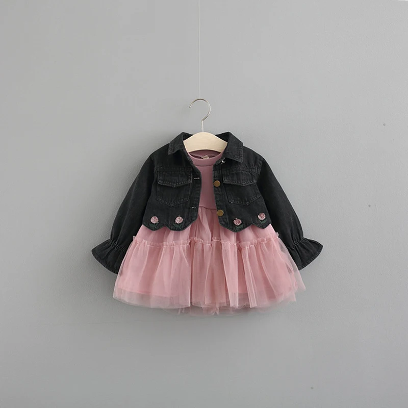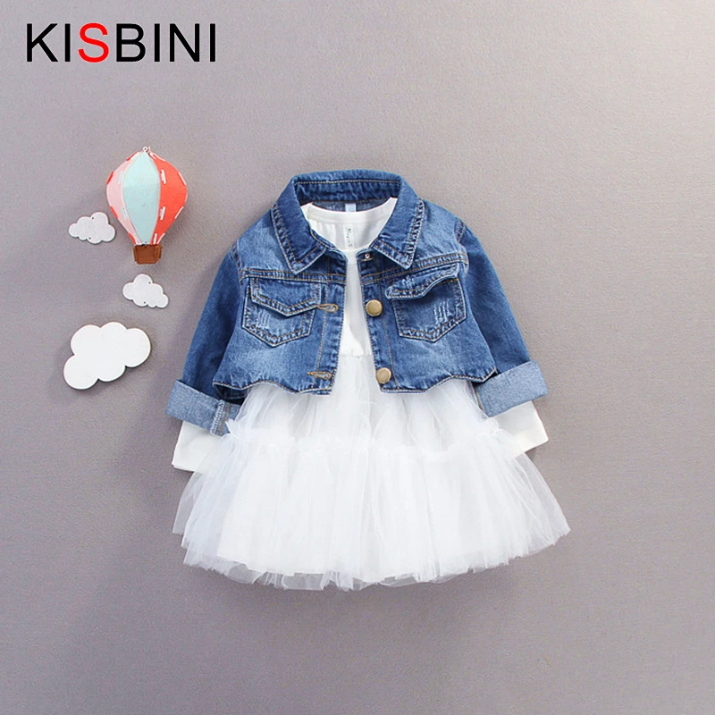 Limited Offer for KISBINI Spring Autumn Baby Girls Jeans Coat Jacket+Long Sleeve Tutu Dress 2pcs/Sets Denim jacket Ou
